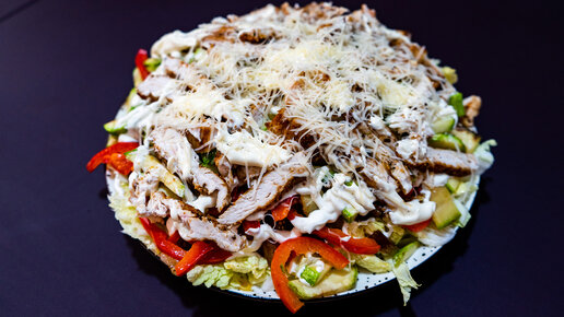 Салат с курицей, пекинской капустой, кабачком и баклажаном