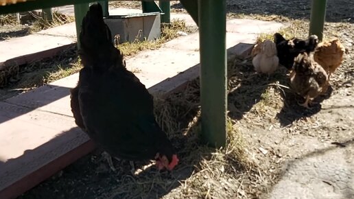 Брошенных цыплят приняла старая курица.