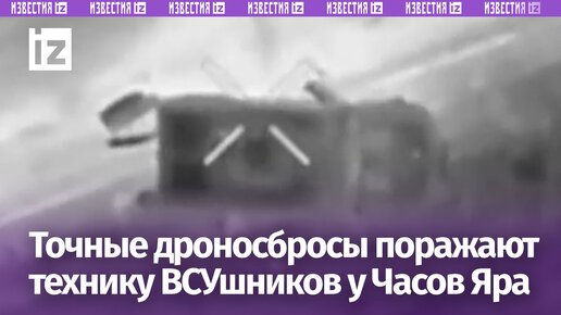 Точные дроносбросы наших бойцов поражают технику ВСУ в районе Часов Яра