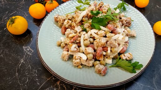 Салат Утро в Венеции. Салат с фасолью. Рецепт салата с фасолью и сухариками.