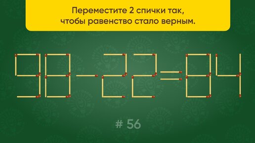 Задача со спичками № 56. Переместите 2 спички так, чтобы равенство стало верным.