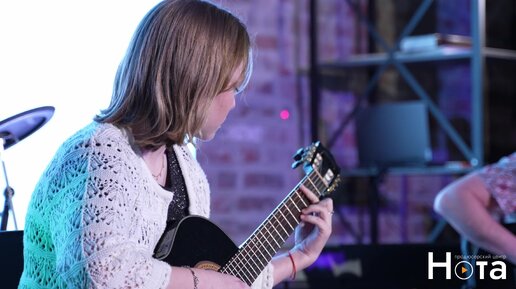 Красивая мелодия на гитаре в исполнении дочери и её преподавателя