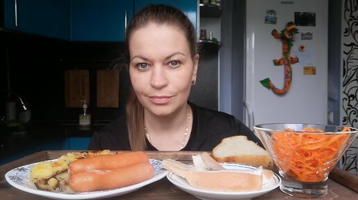 МУКБАНГ ЖАРЕНАЯ КАРТОШКА СОСИСКИ БРЮШКИ СЁМГИ МОРКОВЬ ПО КОРЕЙСКИ/MUKBANG HALK FAMILY ЕДА ОБЖОР