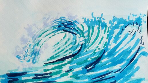 Волна акварельными маркерами