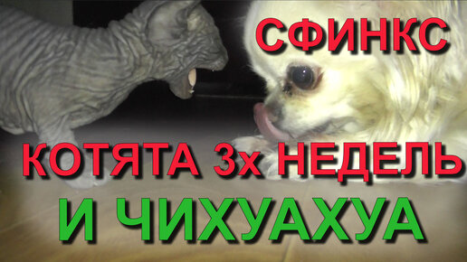 ✅ Реакция новорожденных котят на собаку! Котята сфинкс и чихуахуа. Наши питомцы. kitten and dog
