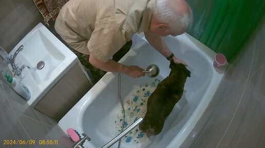 Помывка Дуни после прогулки.