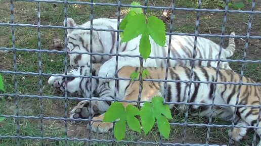 Какая нежность у новенького белого тигренка и его подруги. Парк львов Тайган