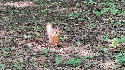 Белочка закапывает орех!