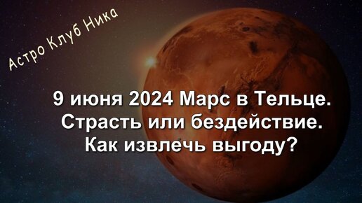 9 июня 2024 Марс в Тельце. Страсть или бездействие. Как извлечь выгоду?