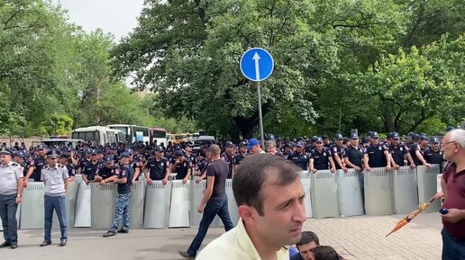 Полиция устанавливает у парламента Армении колючую проволоку - кадры