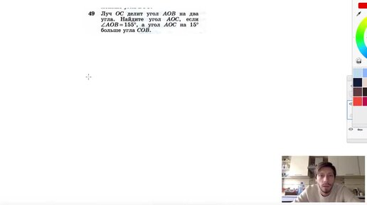 №49. Луч ОС делит угол АОВ на два угла. Найдите угол АОС, если ∠AOB = 155°, а угол АОС на 15°