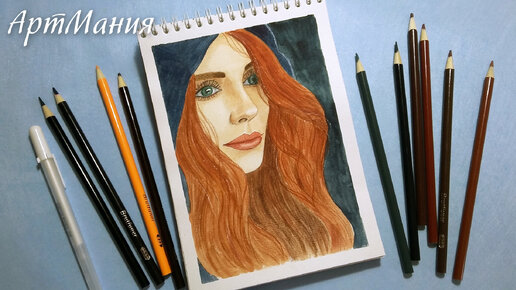 Рыжеволосая девушка - Рисунок в смешанной технике