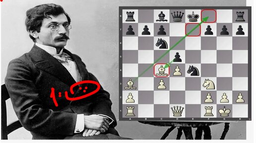 Чемпион мира по шахматам Эмануил Ласкер против Зигберта Тарраша в Берлине, 1918 - красивая победа белых в защите Тарраша, 1-0
