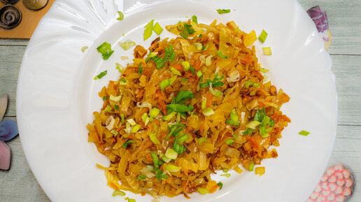 Быстрая и ароматная тушеная капуста с мясом и зеленым луком. Приятное блюдо на каждый день!