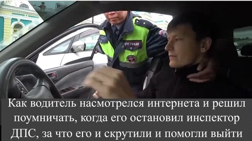 Как водитель насмотрелся интернета и решил поумничать, когда его остановил инспектор ДПС, за что его и скрутили и помогли выйти