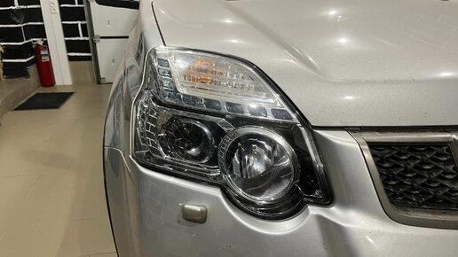 Nissan X-Trail t31 рест - замена линз, диодные Competizione 4k
