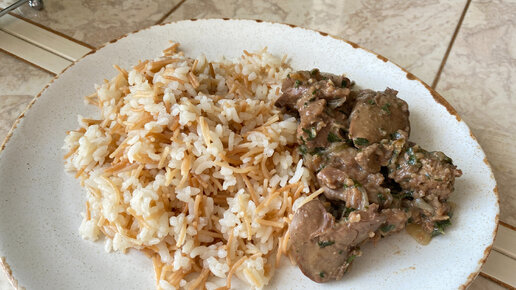 Рис по-турецки и вкусная куриная печень. Всё вкусно, просто и быстро.