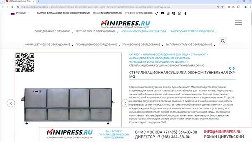 Minipress.ru Стерилизационная сушилка озоном туннельная ZXP-MG