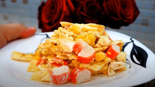 Салат с крабовыми палочками и кукурузой. Рецепт салата с яичными блинчиками.