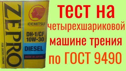 ZEPRO DH-1/CF 10W30 DIESEL тест на четырехшариковой машине трения по ГОСТ 9490 , 60 мин.