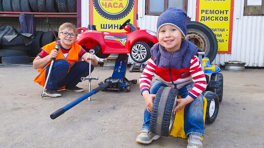 Малыш и панда поехали чинить колесо. Видео для детей.