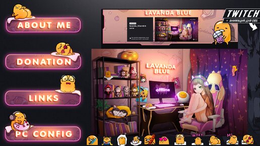 Оформление канала Твич / рисованная комната стримера / стикеры / смайлики для чата