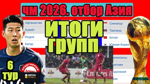 Отбор на ЧМ 2026 в Азии. Кто вышел в 3-й раунд? Южная Корея - Китай. Результаты. Таблицы.