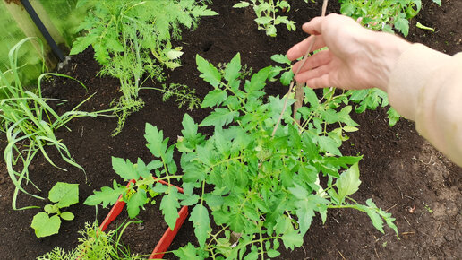 Томаты БЕЗ ПОДКОРМОК! Главное правильно заправить лунки. Как подвязываю и убираю пасынки.