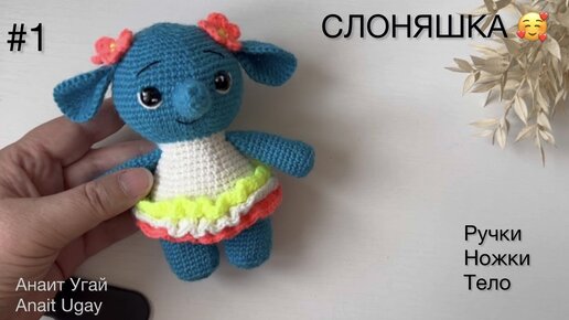 Слоняшка #1 ручки ножки тело. Амигуруми мастер класс для начинающих. Слоник - девочка от Анаит Угай