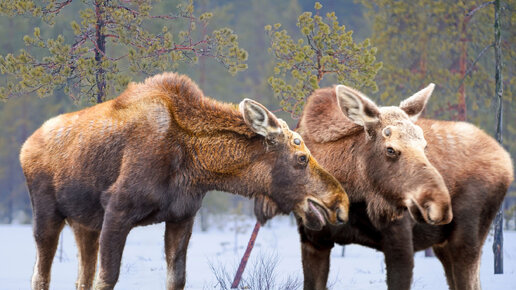 Проведал солонец после зимы. Пять лосей одновременно на солонце.