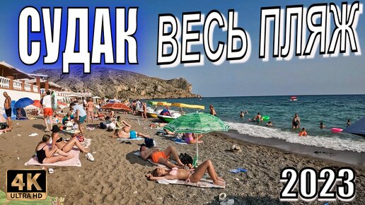 СУДАК. Крым. ВЕСЬ ПЛЯЖ полностью от крепости до аквапарка. Прогулка по пляжу