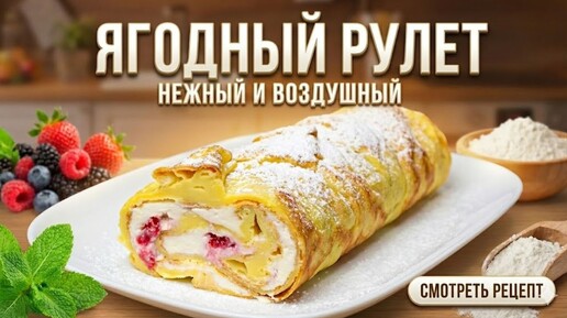 НЕЖНЕЙШИЙ Ягодный Рулет! Тает во рту 🍓 Простой рецепт к чаю.