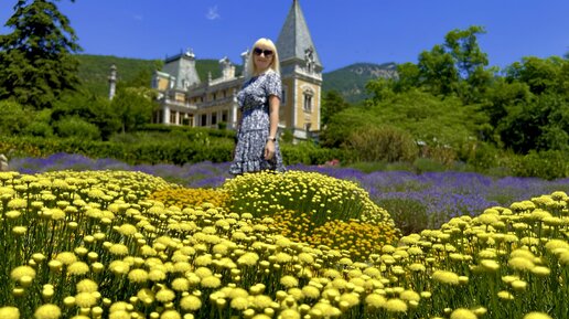 Массандровский дворец и Массандровский парк. Пышное цветение лаванды, роз и сантолины. 10 Июня. Крым, Ялта 2024.