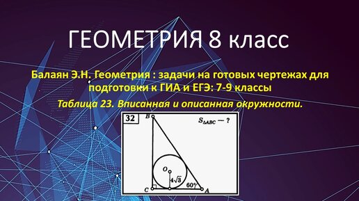 Геометрия 8. Вписанная окружность в задаче № 32 на готовых чертежах.