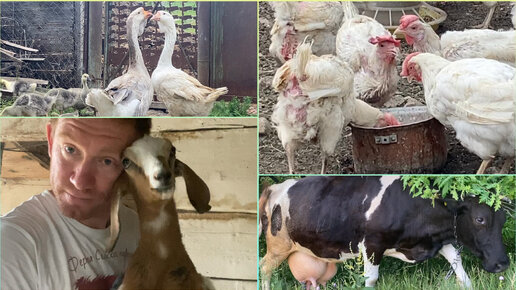 ВЫ ПРОСИЛИ ПОКАЗАТЬ🎥 СМОТРИТЕ. Орущая козочка, семейные гуси, лысые куры, корова в поле, тыквы в огороде.