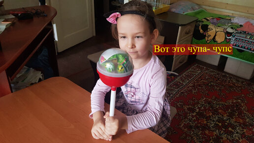 Впервые для Лизы купили чупа чупс больших размеров, внутри которого находится сюрприз, показываю что мы там нашли