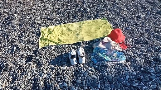 Вот на этом пляжике в Адлере я отдыхаю. Середина июня. Уже рано утром температура воздуха под 30 градусов, вода прогрелась до +25-ти