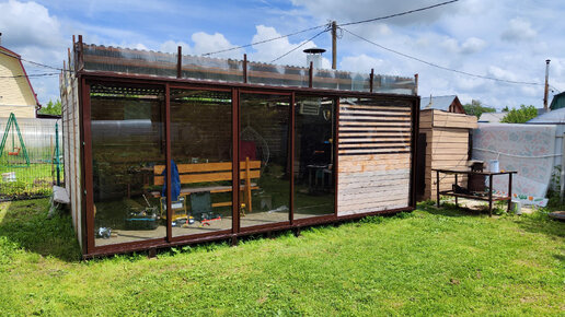Раздвижные двери в беседку. Установка рамы снаружи проёма.