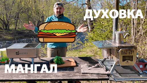 Печь для палатки с ДУХОВКОЙ!, Бургер на мангале.