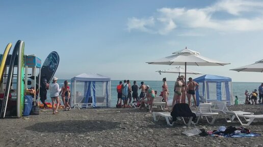 Бело-голубой пляж Чайка. Информационный стенд. Лазаревское Сочи. Столовая Парус. Меню и цены. 13 июня 2024