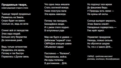 Продажные твари, новая редакция старого стиха
