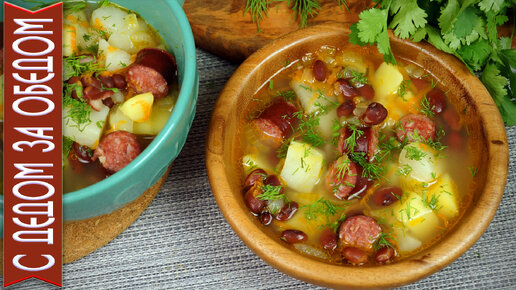 Суп с копчеными колбасками и фасолью