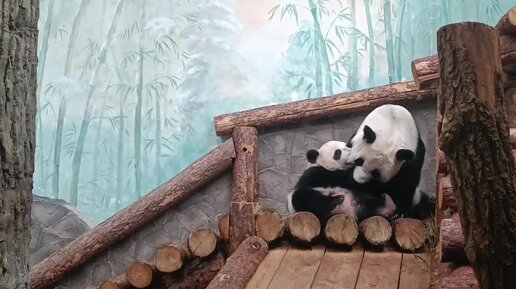Утренние «поцелуи» от маленькой панды Катюши: по мордочке мамы Диндин так и видно счастье 💋
