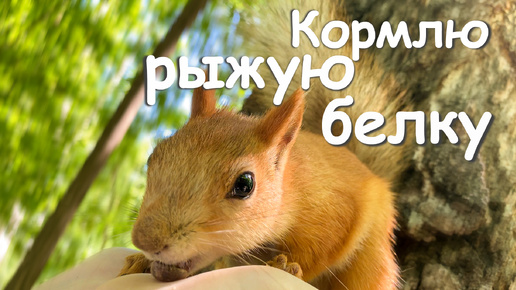Кормлю рыжую белку. Лето к нам пришло.