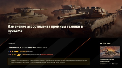 ТАНКОВЫЕ НОВОСТИ - ОБНОВЛЕНИЕ МАГАЗИНА ✦ ПРОЩЕНИЕ С КАЛИБАНОМ И РБФМ ✦ НОВЫЕ ТАНКИ