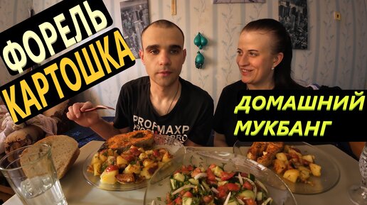МУКБАНГ С ВАРЕЙ ДОМА / ФОРЕЛЬ С КАРТОШКОЙ / САЛАТ ОВОЩНОЙ / ОБЖОР / EATING Mukbang / ASMR АСМР