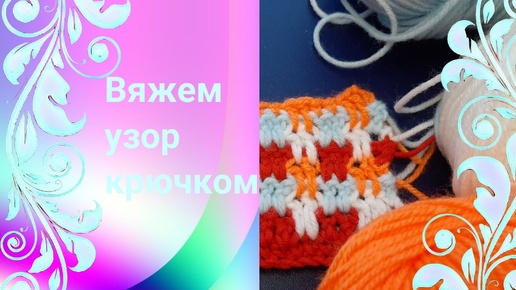 Узор крючком простой, но эффектный. Разноцветный узор крючком в 2 столбика.
