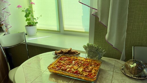 Розовые облака. Овощное рагу в духовке и нежнейшая куриная грудка, тает во рту.