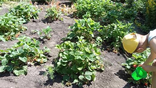 У бабушке в деревне. Обзор сада, клубника цветы
