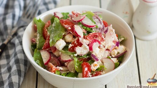 Универсальное дополнение ко многим блюдам. Салат с редиской и сыром фета